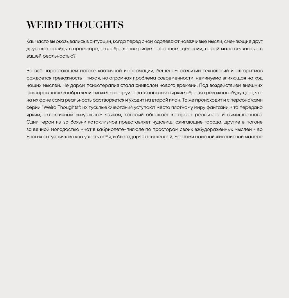 Каталог персональной выставка Константина Чиркова (NOHEROES) “Weird Thoughts” («Дурные мысли») в Reloft ART